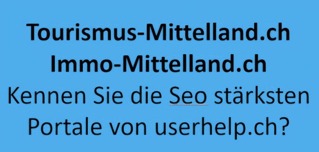 Schreiben Sie mit auf Immobilien Schweiz! Lassen Sie Ihr Immobilienportal oder Bau KMU seo optimieren von der Firma, die mit Seo Immobiien Schweiz gleich 2x auf Seite eins oben ist! Seo Immobilien und Tourismus hängen zusammen. Wir halten die revDSG Schweiz ein. Die Webseite richtet sich an Schweizer und Schweizerinnen, siehe AGB und Haftungsauschlüsse der Firma Userhelp.ch