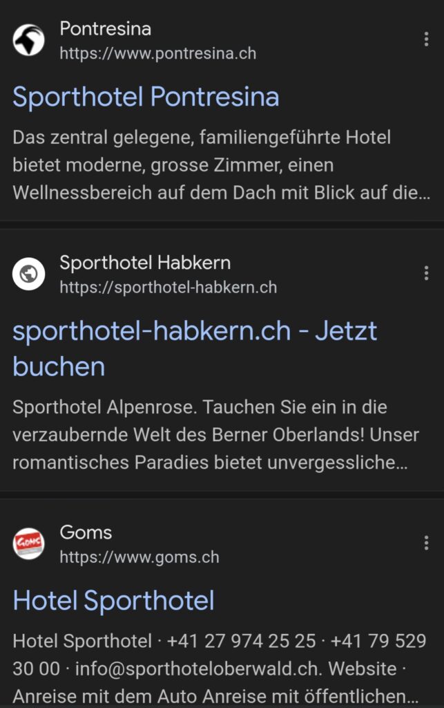 Eines dieser 3 Sporthotels in der Schweiz könbte https://www.sporthotel-schweiz.com übernehmen und so unangefochten die Nummer 1 sein bei den Suchmaschinenen.